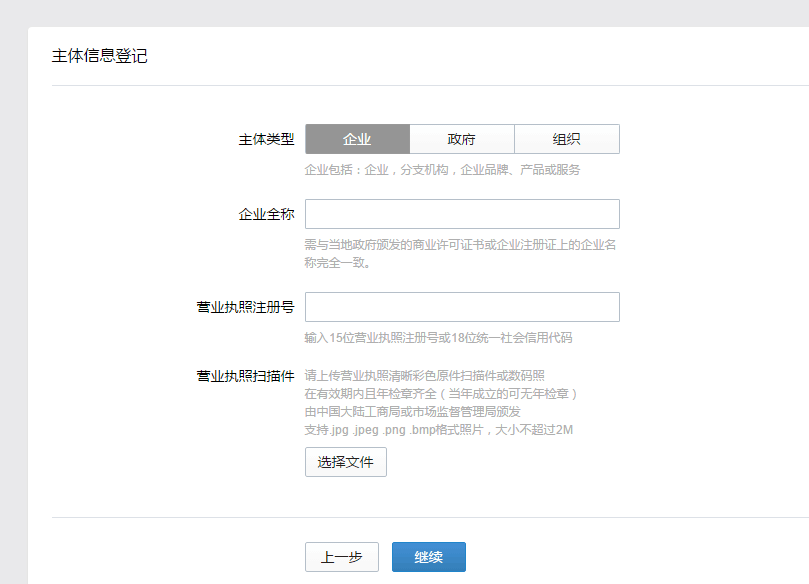 2、注冊:準備好企業營業執照掃描件(照片亦可)